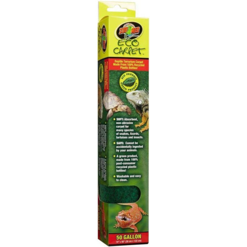Zoo Med Eco Carpet Reptile Carpet - Green - 50 Gallon (15" x 48")Zoo Med Eco Carpet is a soft, absorbent and non-abrasive terrarium liner for tortoises, terrestrial turtles, snakes, lizards, and insects. This carpet cannot be accidentally ingested by your animals and is a better solution for your tank than non-absorbent Astro-turf carpets. Eco Carpet is washable, easy to clean and made from 100% post-consumer recycled materials.