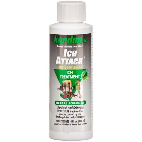 Kordon Ich Attack is a 100% organic disease treatment for fresh and saltwater aquariums, including those with reefs and live rock. Its safe, effective, and treats diseases caused by: Ich, fungus, protozoans, and dinoflagellats.