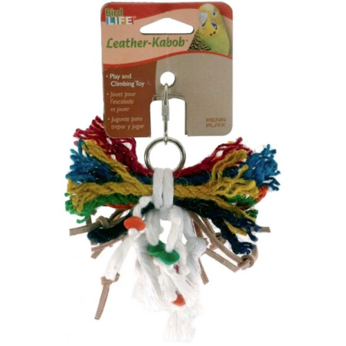 Penn Plax Bird Life Leather-Kabob Toys provide fun, exercise and mental stimulation for parakeets and other small birds. Each kabob features bright colors and a mix of soft and tough materials to keep birds engaged and active while in their cages.