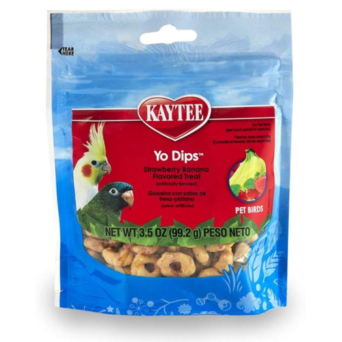 Kaytee Fiesta Yogurt Dipped Treats - Strawberry-Banana is a blend of delicious dried tropical fruits and crunchy fortified nuggets with a smooth, creamy, fruit flavored yogurt coating. This tropical combination is a healthy and fun treat for your pet!