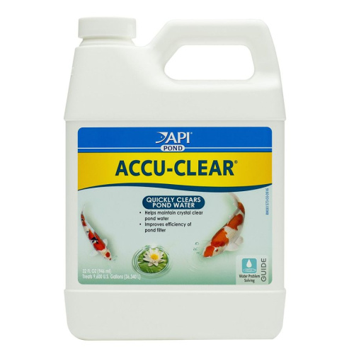 API Pond Accu-Clear quickly clears floating particles and helps clarify cloudy and murky water to help maintain a crystal clear pond. Accu-Clear helps filters function more efficiently by causing tiny suspended cloud particles in pond water to clump together.