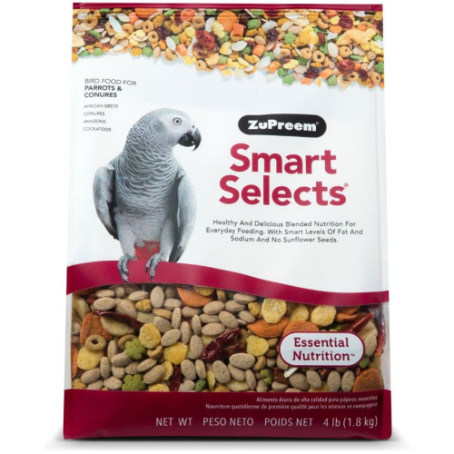 ZuPreem Smart Selects?provides healthy and delicious blended nutrition for everyday feeding for Conures, Caiques, African Greys, Senegals, Amazons, Eclectus, Small Cockatoos and other medium to large parrots that prefer this food size.